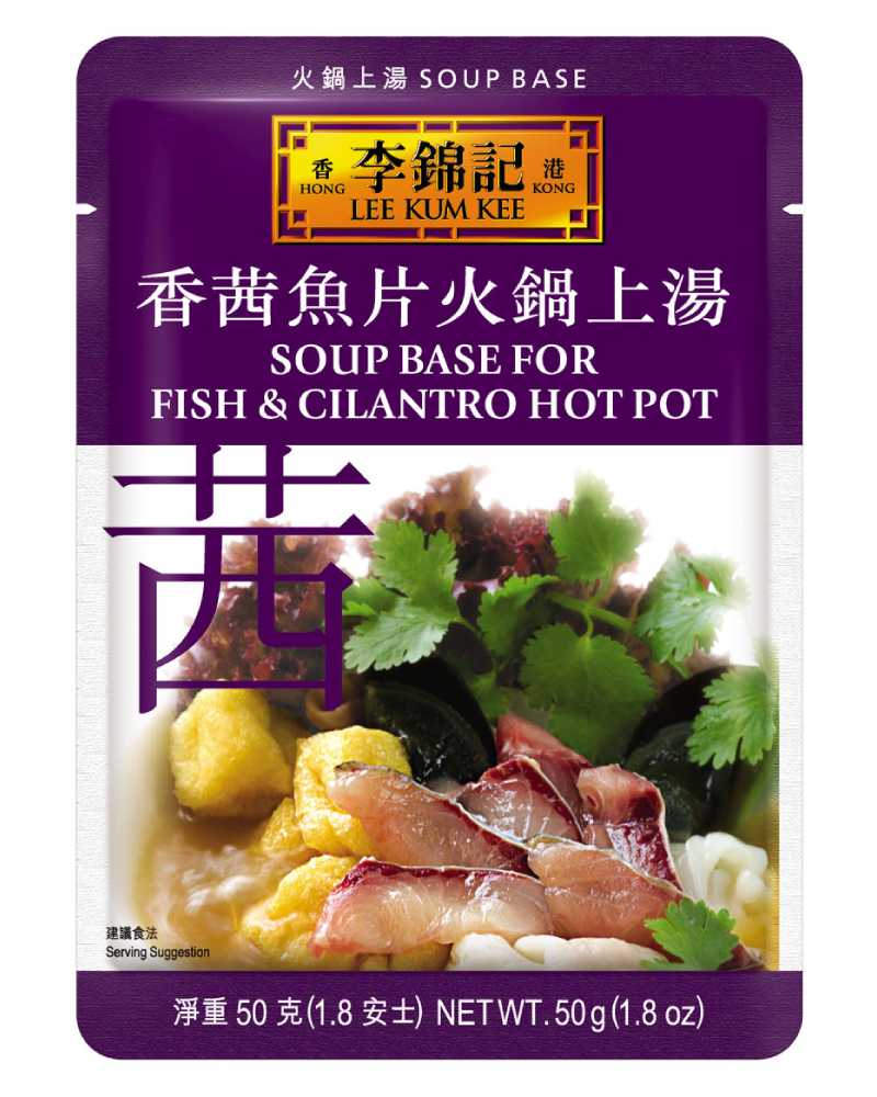 Ready made in a wide variety of flavors, Lee Kum Kee Convenient Soup Base bring you delicious hot pot and save your preparation time in the kitchen. Made from specially prepared fish essence , this concentrated soup base is rich with fish and cilantro flavor. It is ideal soup base for hot pot and noodles. Soup Base For Fish & Cilantro Hot Pot Dissolve one pouch of Lee Kum Kee Soup Base For Fish & Cilantro Hot Pot into 1.5L (about 6 cups) of boiling water to make a delicious Soup Base For Fish and Cilantro Hot Pot.