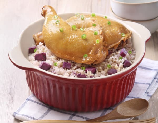 When rice is almost cooked to fluff, place drumstick on top of the rice, taking care to not stack the meat to heat well, then replace the lid to let it all simmer until thoroughly cooked. Sprinkle on green onion to serve.