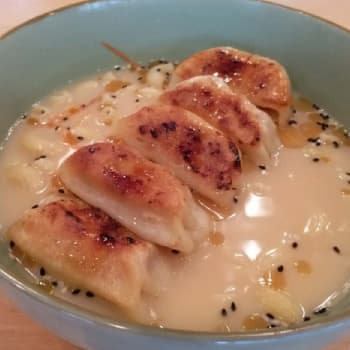 A pork bone broth seasoning with onion, garlic and spices which has a natural golden color. Good to use as Kyushuu style soup base for ramen or hot pot meals.