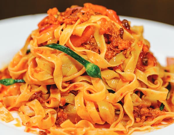 Add tomatoes and XO Sauce and toss together. Remove from heat. Plunge the fresh tagliatelle in boiling salted water.