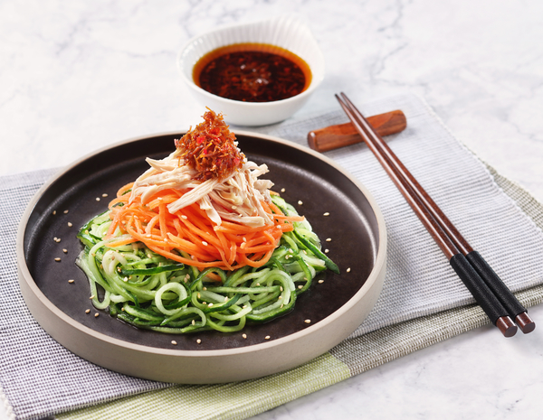 Rendam mentimun dan wortel dengan ½ sdt garam selama 5 menit lalu tiriskan air nya.